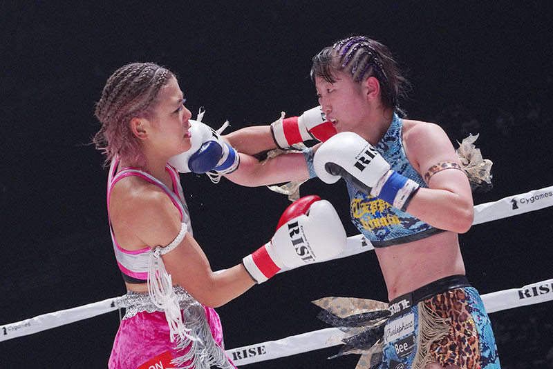 寺山日葵(右)とパンチを打ち合うerika♡(20年10月)