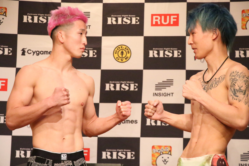 髪をピンクに染めた梅井(左)と青髪の平野