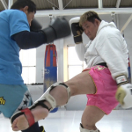 公開練習のパートナーは、同門のマキ・チャーチャイ(右)だった(C)K-1