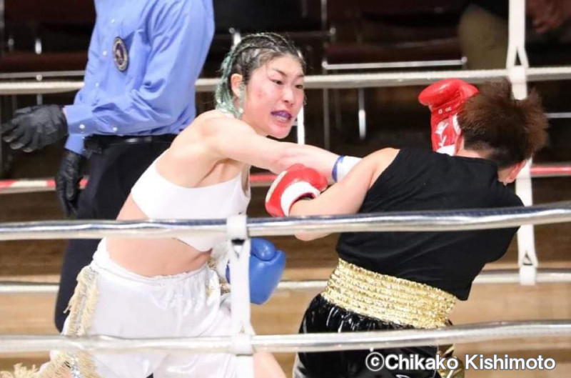 鬼の形相で右ストレートを打ち込みTKOする赤林檎(昨年4月)