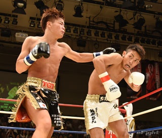 天心(左)は王者・村越とタイトルマッチで対戦(2015年5月31日)