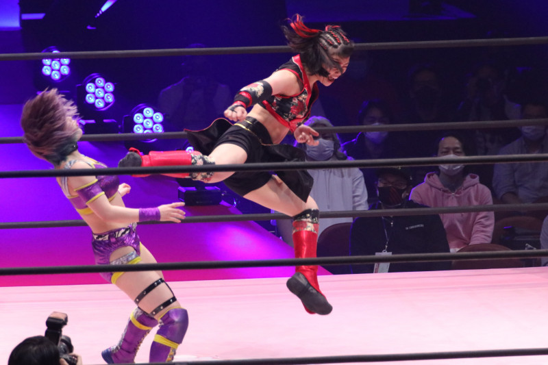 飛び蹴りも見せた