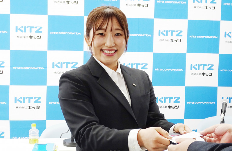 入社式に臨んだ須崎優衣(株式会社キッツ提供)