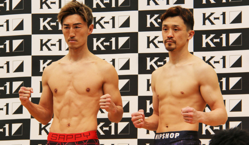 王者・山崎(左)と挑戦者・大和(右)が仕上がった身体をアピール