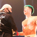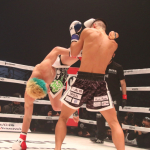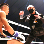 父や風音に対策された天心の左だったが、この写真のように右フックもカウンターで合わせた天心