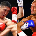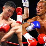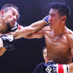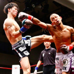 前口太尊(左)との倒し、倒されの試合をKO勝利した”大激闘男”勝次(右)