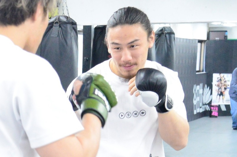 矢地は仮想グスタボの金原正徳を相手に打撃のマススパーを披露(C)RIZIN FF
