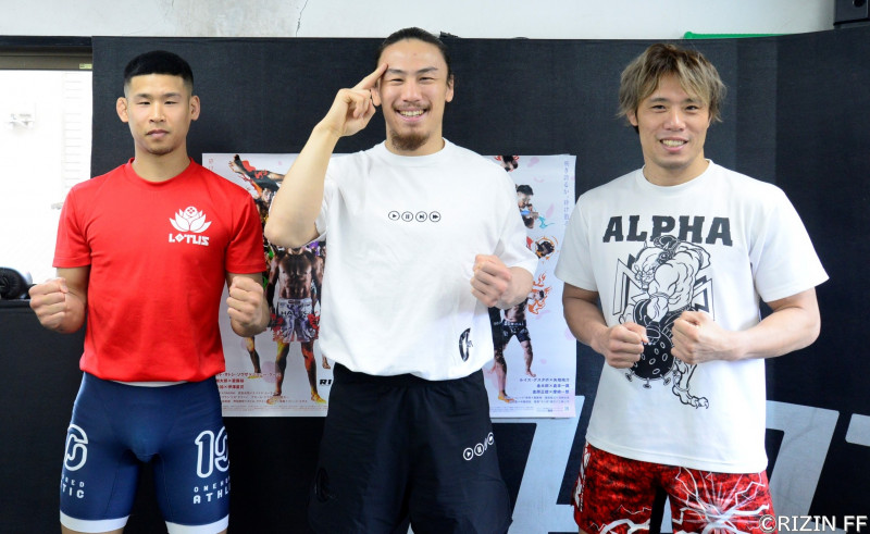 公開練習は、矢地(中央)、金原正徳(右)、中島太一の3名で行った(C)RIZIN FF