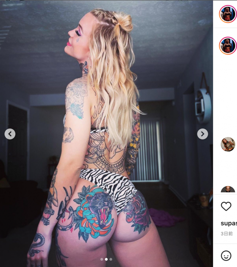 全身タトゥー美女テイラー、セクシーなゼブラ柄のビキニ姿@taywstarlingより