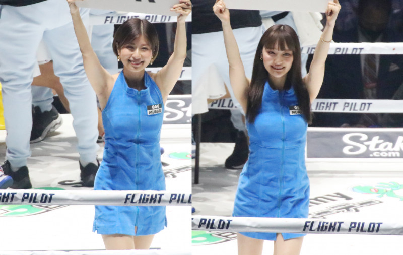 村田vsゴロフキン戦でリングガールを務めた天野麻菜(左)と、みうらうみ