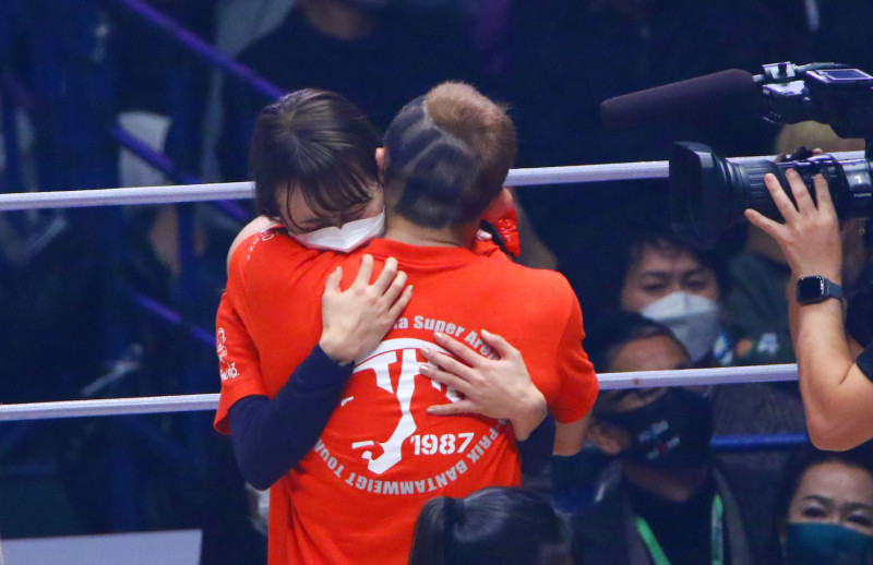 試合後、歓喜し抱き合う2人