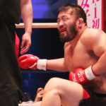 K-1で実方にKO勝ちも、左脇腹を抑え痛そうにしゃがみ込む石井