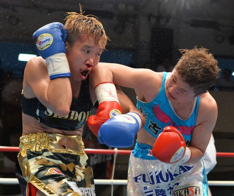 WBO女子世界バンタム級タイトルマッチで真道ゴー(左)は壮絶な殴り合いを展開した(2016年・東スポWeb)