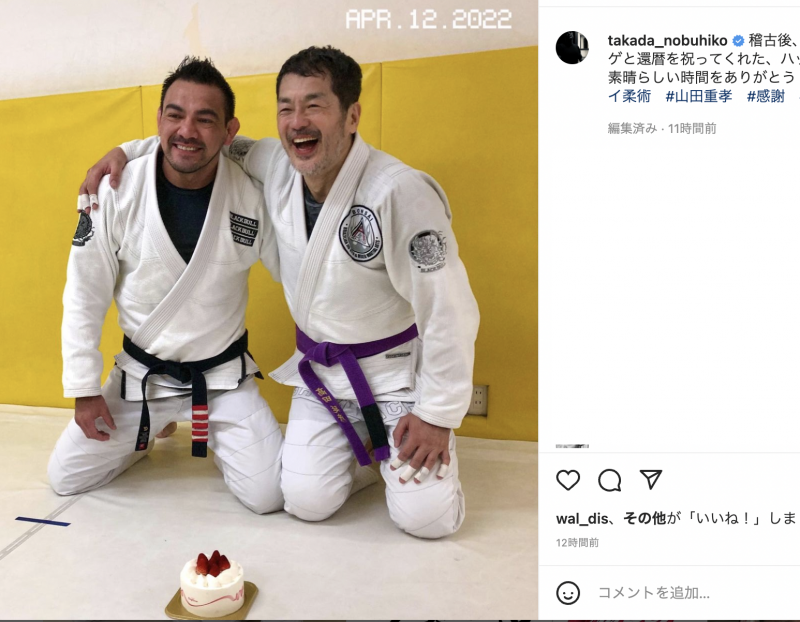 柔術姿で還暦を報告する髙田(髙田延彦インスタグラムより)