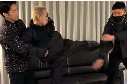 BreakingDownで瓜田純士と対戦したこめお(中央)が、朝倉海のスタッフと乱闘騒ぎ(朝倉海の『ほのぼのかいちゃんねる』より)