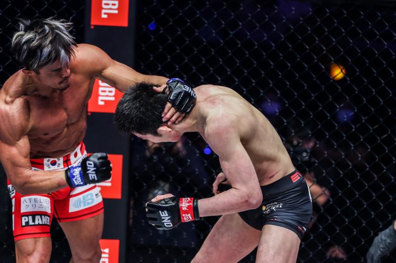 打撃で逆襲する秋山(C)ONE