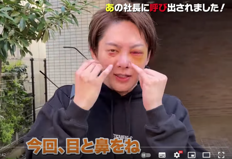 青汁王子の手術後の腫れた目を公開(三崎優太 青汁王子YouTubeより)