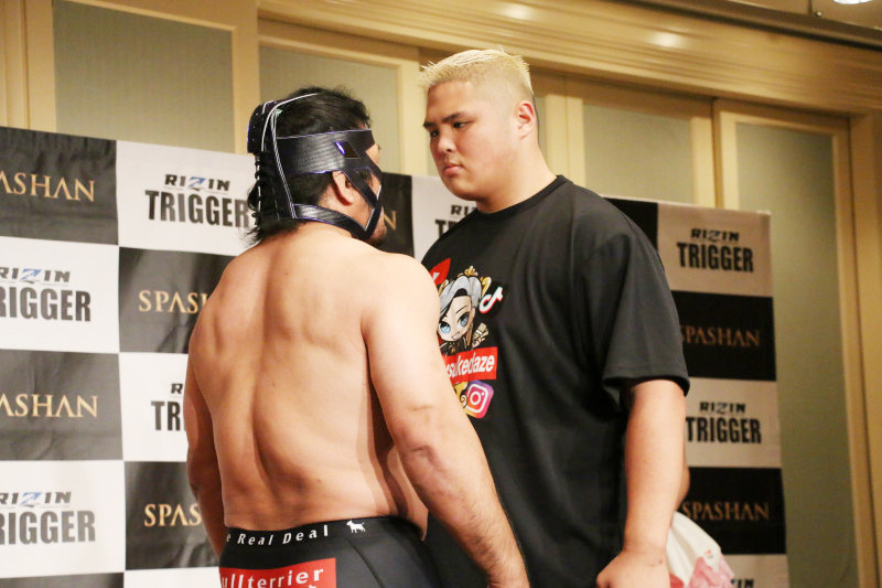 今にも殴りかかりそうなフェイスオフの元大相撲・貴賢神
