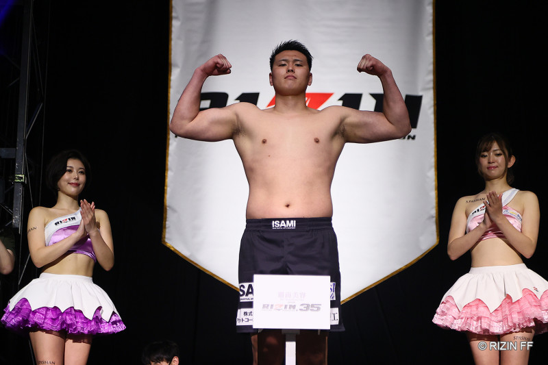 マッスルポーズをとる上田