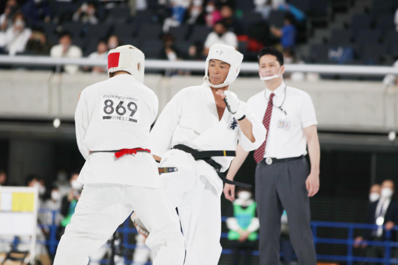 長嶋が下段回し蹴りで反撃