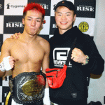 16歳でRISEのベルトを巻いた田丸(左)も20歳となった(那須川天心と記念撮影)