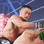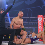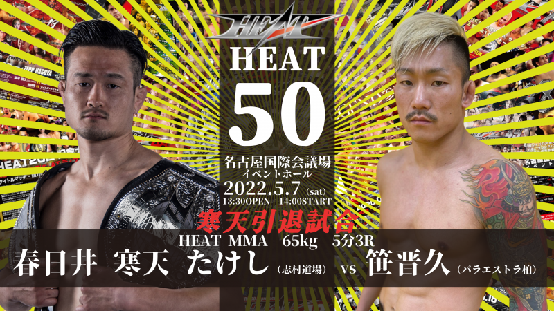 春日井“寒天”たけし(左)、引退試合で笹晋久(右)と激突!©️HEAT