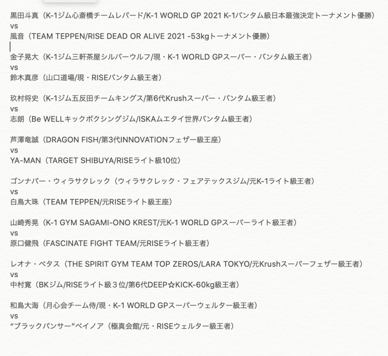 8カードが発表になった(6月19日東京ドーム『THE MATCH 2022』)