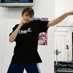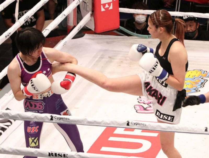 長い足で蹴りを入れるAKARI