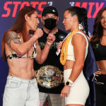 サイボーグ(左)がバキバキボディでレンコウと睨み合い ©️Bellator
