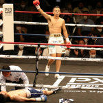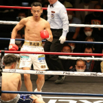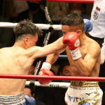 1、武居(右)のKOの瞬間はこのカウンターの右フック