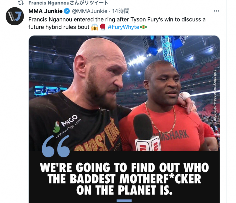 フューリーとガヌーが試合後2ショット(@MMAJunkie)