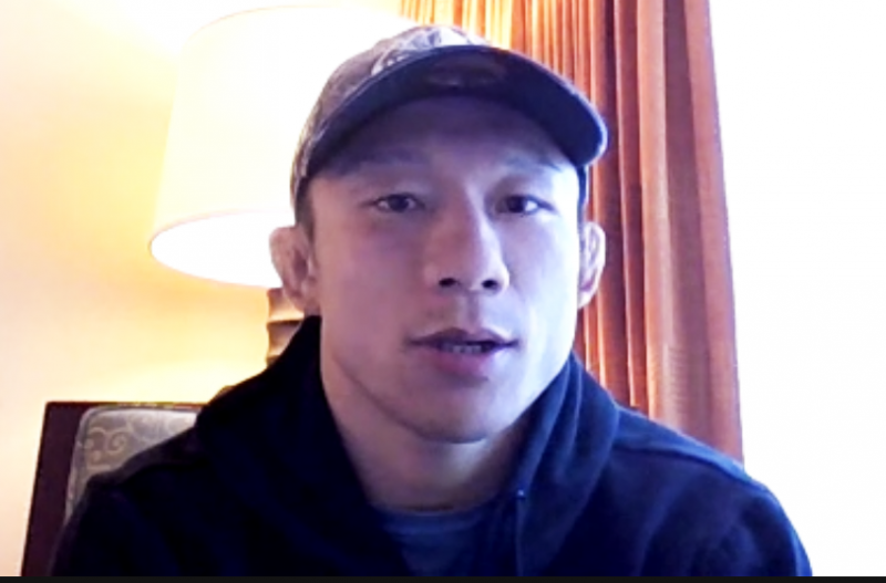 一夜明けのオンライン会見に出席する堀口
