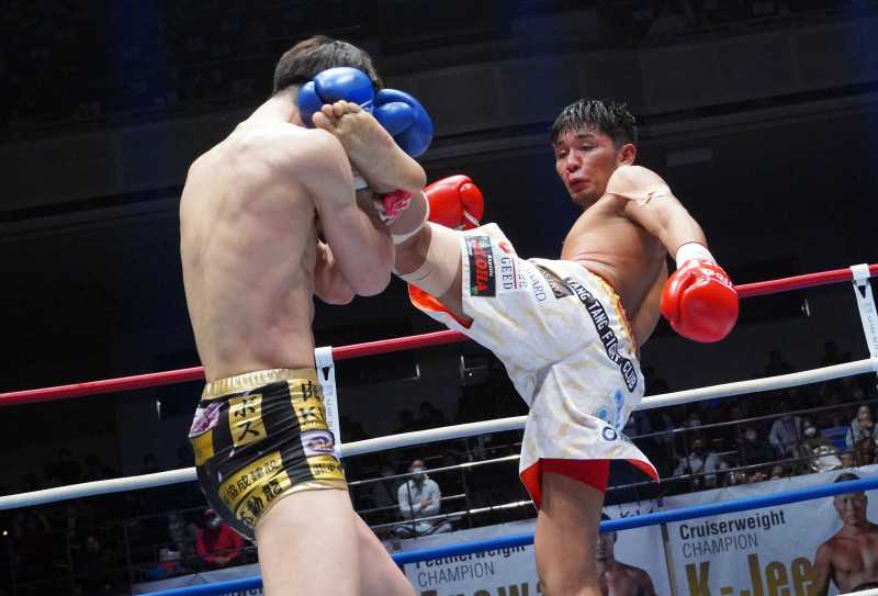 前回、瓦田(左)にハイキックをヒットさせる大沢 リベンジ戴冠なるか