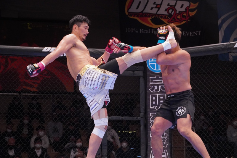 ハイキックを放つ住村(2021年10月)