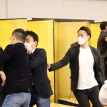 YA-MANがヒザ蹴り(青汁王子YouTubeより)