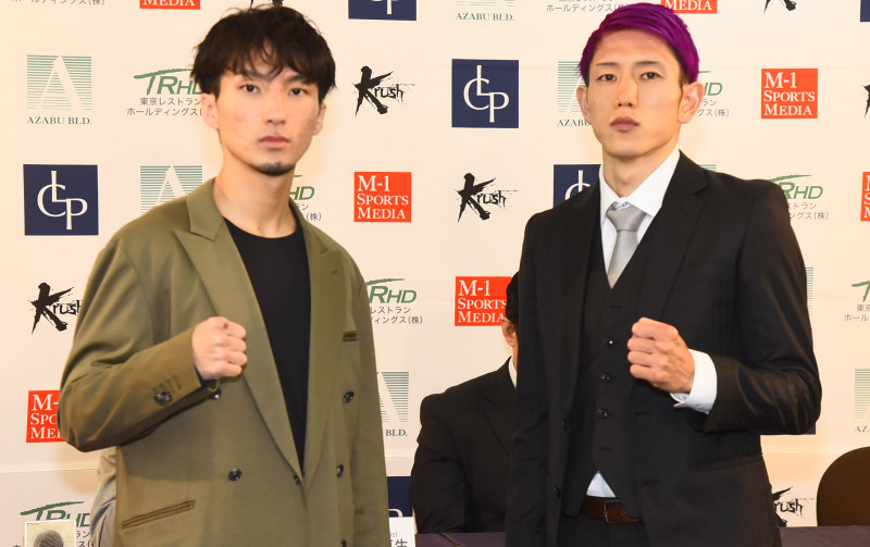 セミファイナル、Krushライト級(62.5kg)で対戦する西京佑馬(左)と増井侑輝(右)