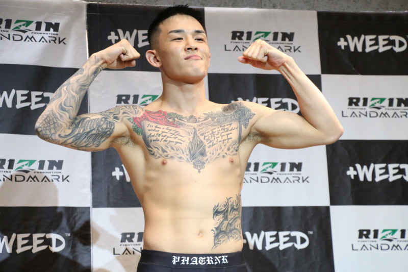 萩原は計量パスしてマッスルポーズ