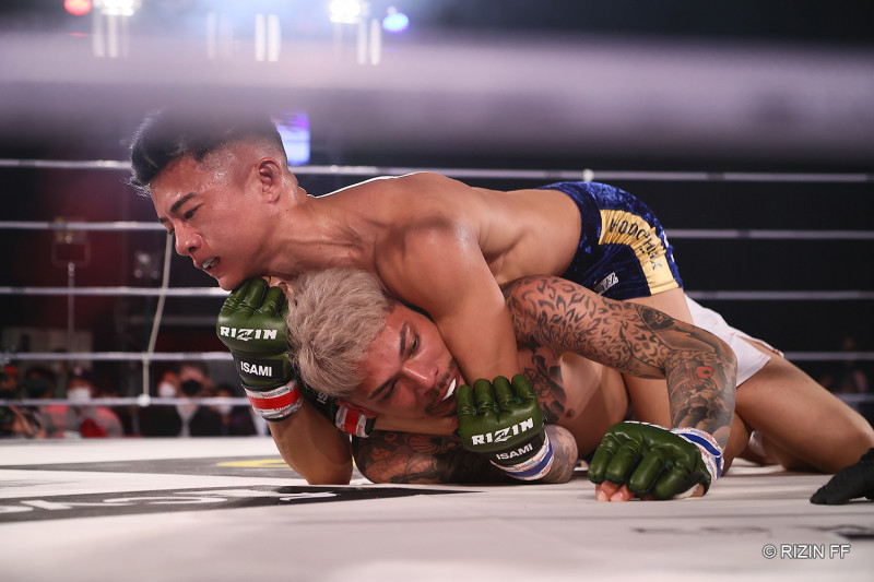 YUSHIがテイクダウン後、寝技の展開に(C)RIZIN FF