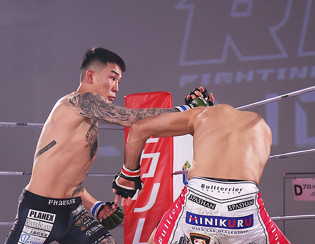 萩原の右ストレートを被弾したクレベル、その後は盤石の強さを見せた(C)RIZIN FF