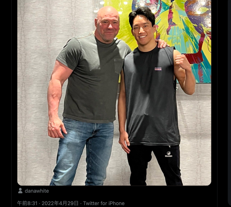 UFCダナ・ホワイト社長(左)と朝倉海が並ぶ(@kai_1031_より)