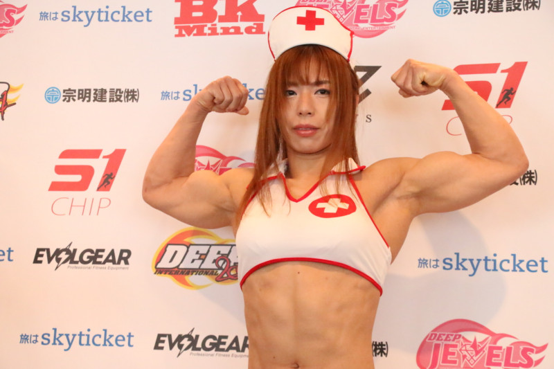 ナース風の衣装で計量に臨んだ中井りん