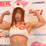 注射器を持って笑顔で計量に臨む中井