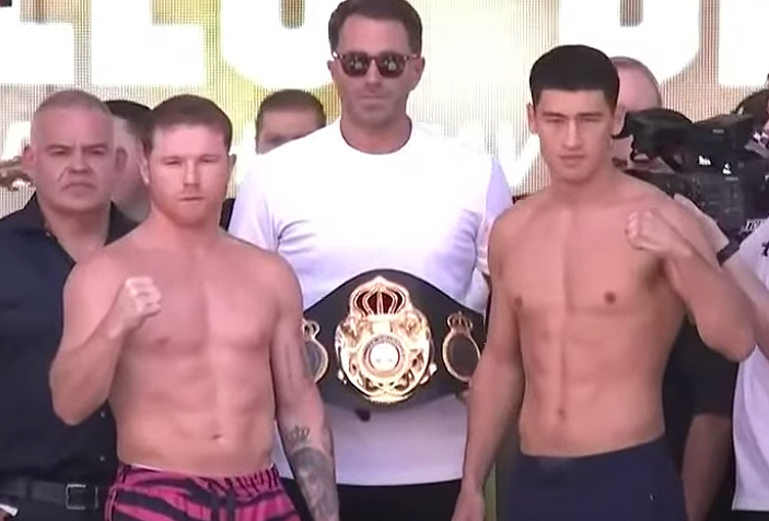カネロ(左)と王者ビボルが計量をパスした(C)DAZN
