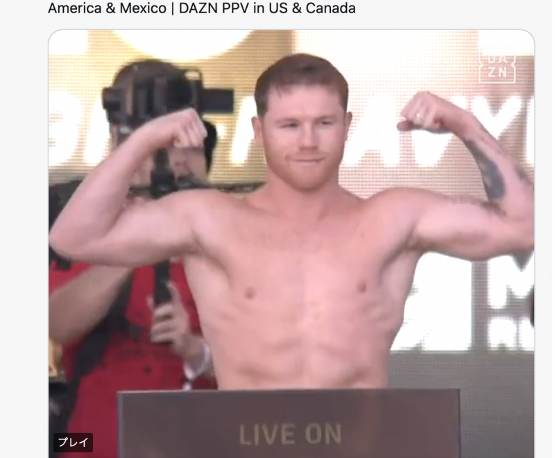 カネロの計量パス後のマッスルポーズ(DAZN Twitterより)