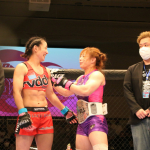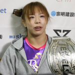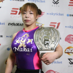 中井は、DEEP JEWELSフライ級のベルトを肩にかけて記念撮影に応じた