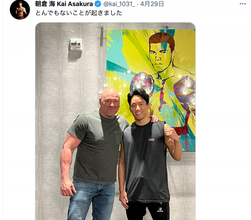 UFCダナ・ホワイト代表と朝倉海(朝倉海Twitterより)