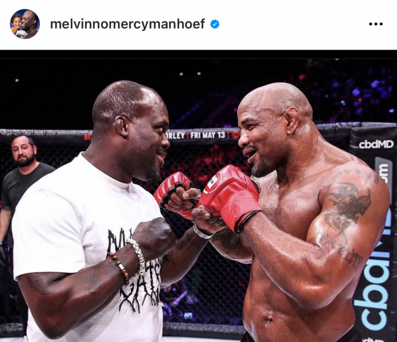 マヌーフ(左)が試合直後のロメロ(右)と向かい合う=今月6日 @melvinnomercymanhoef