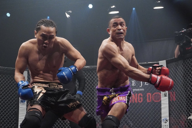 モハン・ドラゴン(右)は佐々木大と打ち合い判定勝利