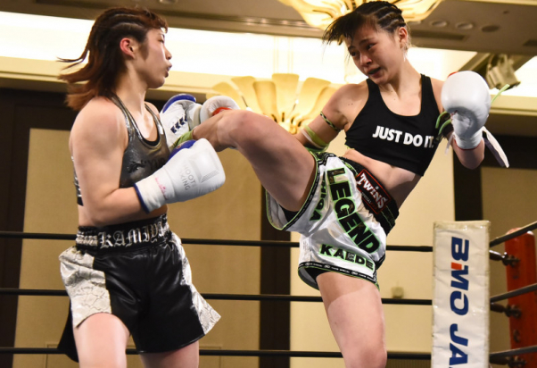 KAEDE(右)は前回の試合で、神谷優良(左)から勝利