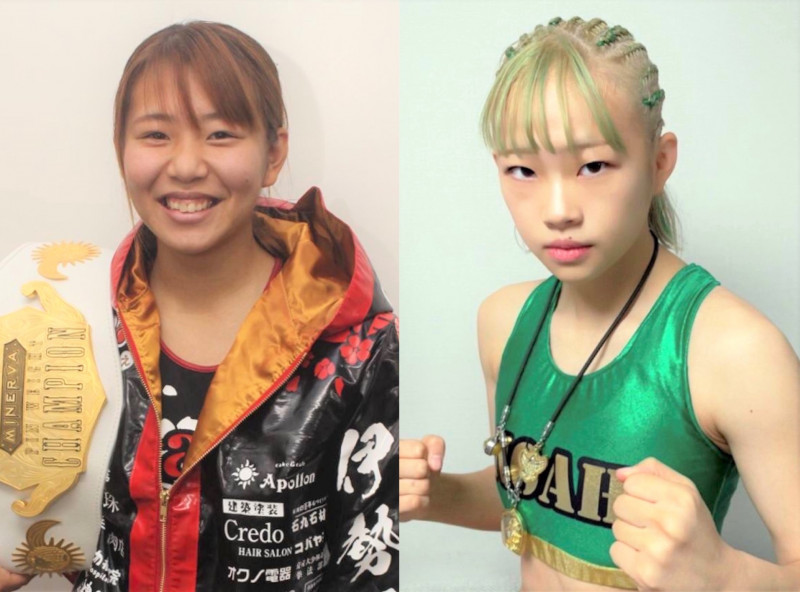 女王Ayaka(左)にJKファイター藤原乃愛(右)が挑戦する